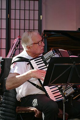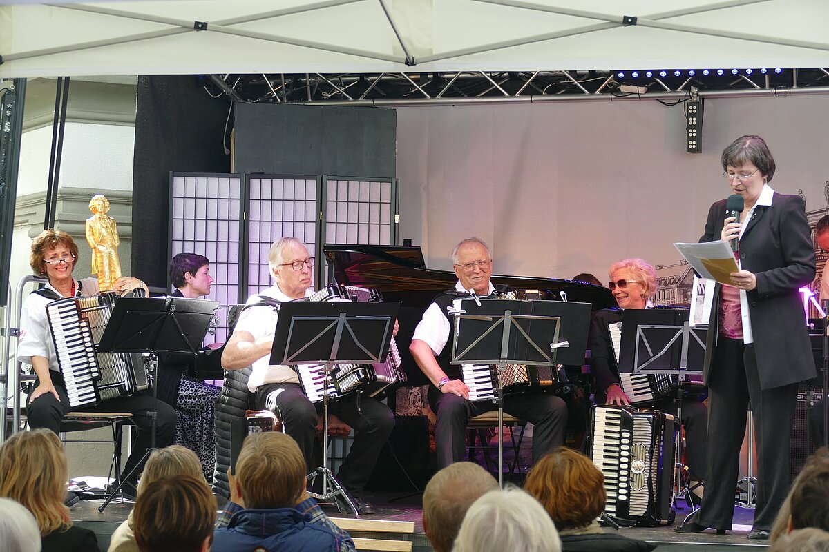 Das Akkordeonorchester aus Wesseling war an diesem Nachmittag der erste Programmpunkt. Es spielte Gutelaunemusik - viel Pop, Evergreens und eigene Arrangements. So passend für diesen spätsommerlichen Nachmittag!