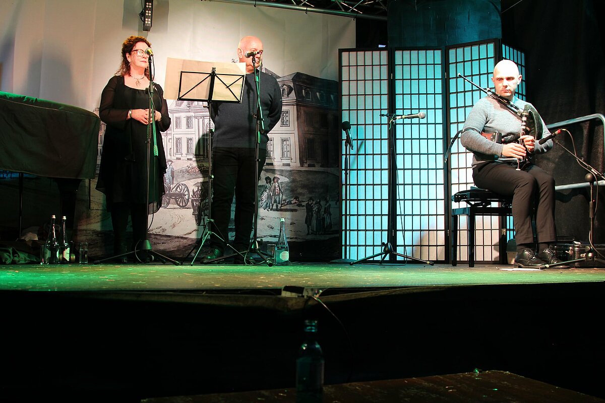 Der Musikwissenschaftler Michael Klevenhaus hat sich in jahrelanger Recherchearbeit auf die Suche nach den gälischen Vorlagen der schottischen Lieder Ludwig van Beethovens begeben und ist fündig geworden. Er wurde heute Abend begleitet von der wunderbaren schottischen Sängerin Main Maelmes und von Michael Zöller, Leiter der ersten professionellen Dudelsackschule Deutschlands, auf typisch schottischen Instrumenten.